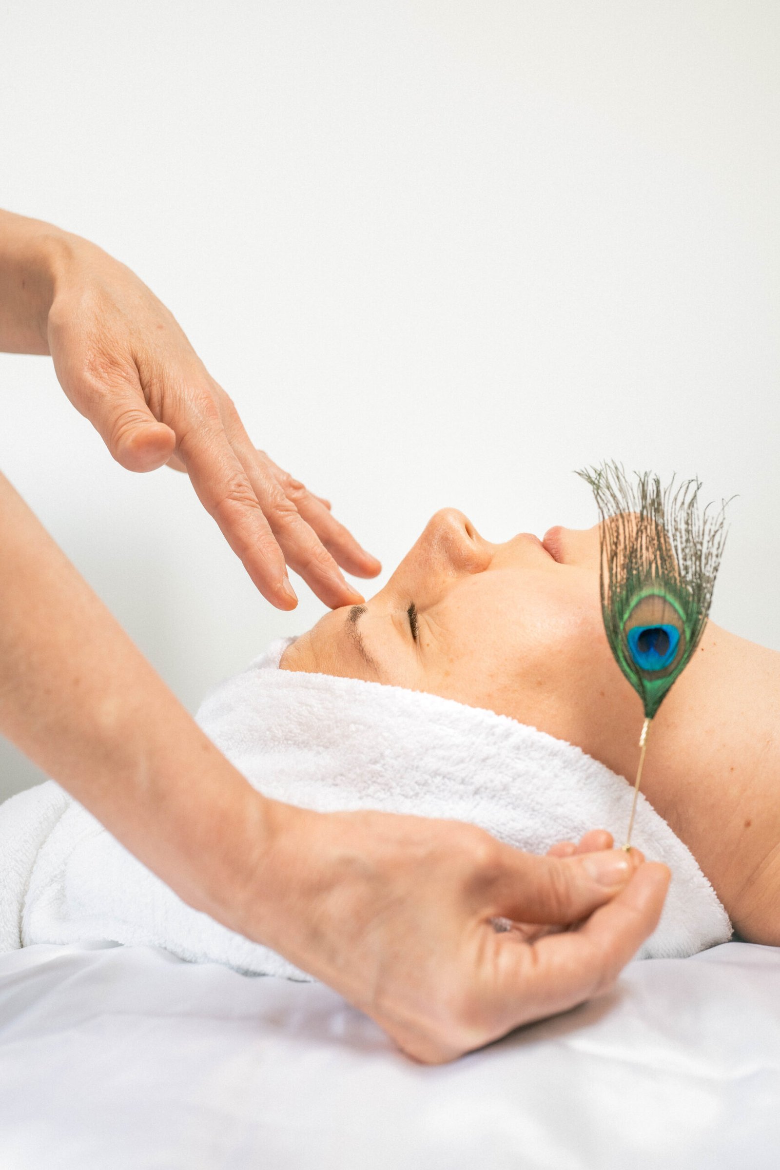 C’est une chorégraphie royale, où les mains et les doigts se déploient comme des plumes de paon, effleurant le visage en surface ou en profondeur, selon son rythme et sa vibration.
